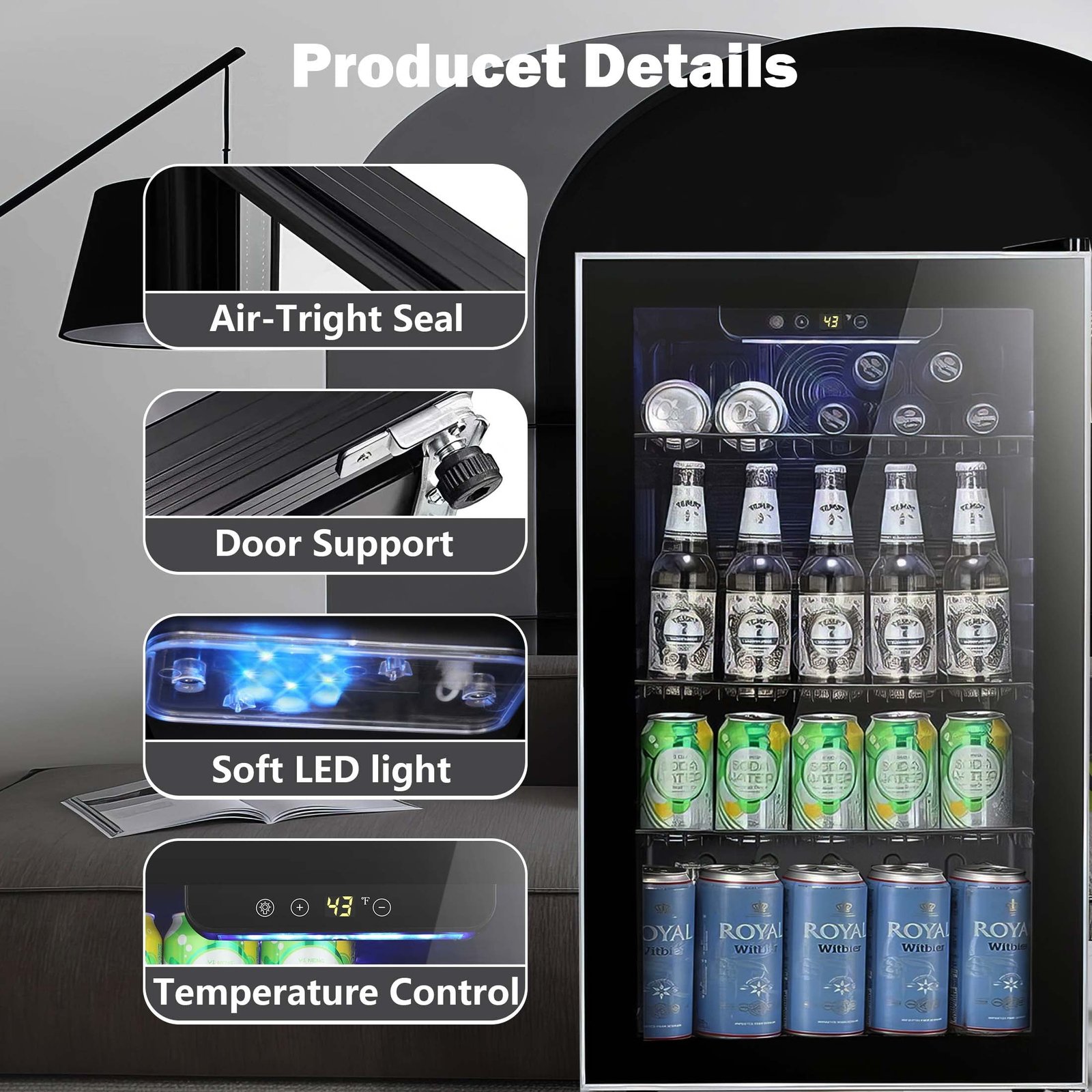 Auseo 126 Can Beverage Refrigerator and Cooler with Glass Door for Home/Office/Bar-Black