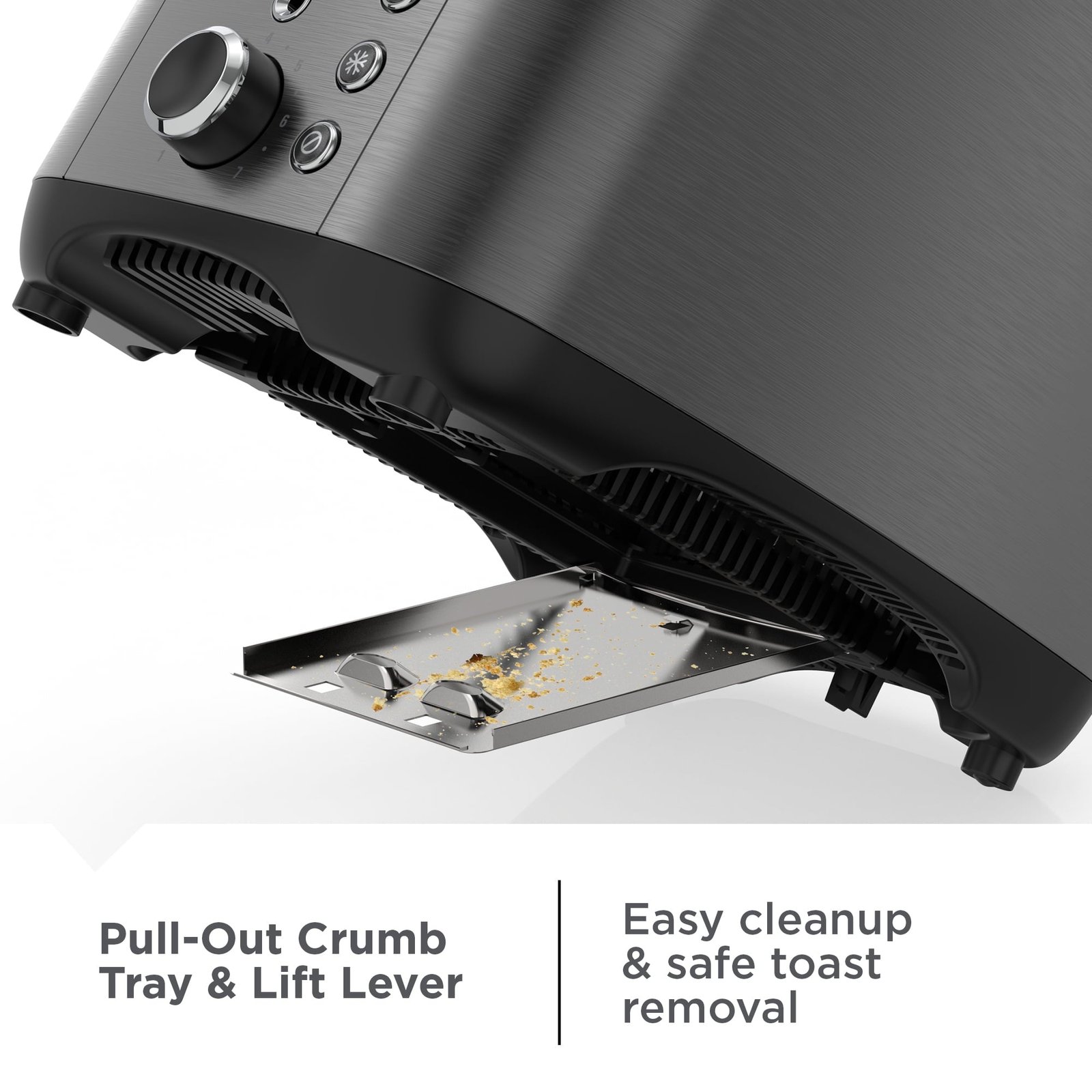 - Pull-out crumb tray: Keeps your counter clean with an easy slide mechanism