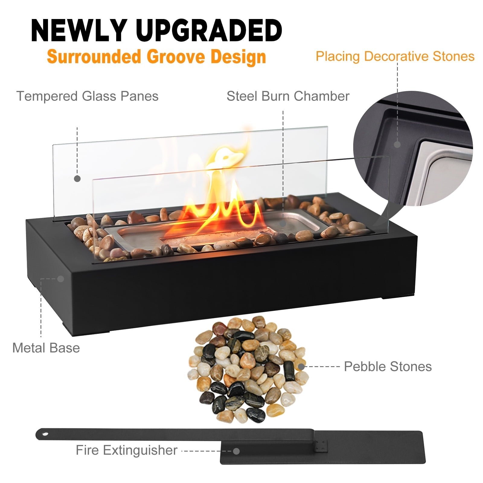 Durable Construction: Features a solid steel base and tempered glass panels, ensuring long-term durability for the tabletop fire pit.
