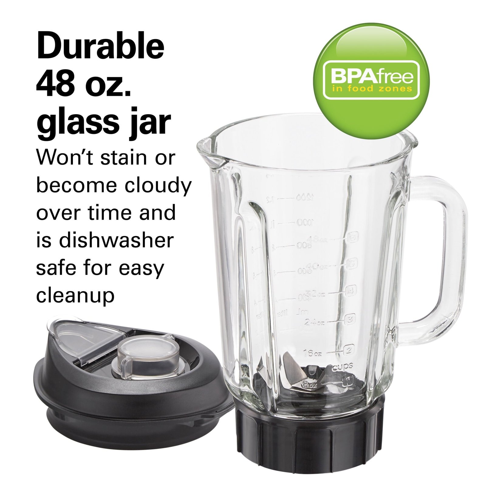 With the Hamilton Beach PowerMax Professional-Performance Blender, you’ll be inspired to create everything from nutritious smoothies and silky purees to icy cocktails, chunky salsas and creamy tzatziki. You’ll find yourself experimenting with new food and beverage recipes all week long, and you’ll enjoy restaurant-quality results every time you blend. This professional-performance blender crushes the competition because it packs 1680 watts of peak power to blend everything with ease. It’s our most powerful home blender — so powerful that the 22,000 RPM motor is designed to cut through the toughest ingredients in seconds. The PowerMax Professional Performance Blender features a top-quality, all-metal drive and stainless steel blades for robust performance, and it’s backed by a 3 year limited warranty. Includes a durable 48 oz. glass jar that won’t stain or become cloudy over time and an intuitive touchpad with 3 speeds and pulse. For mess-free pouring, the leak-resistant lid has an easy-pour spout. The jar and lid are dishwasher safe for easy cleanup.