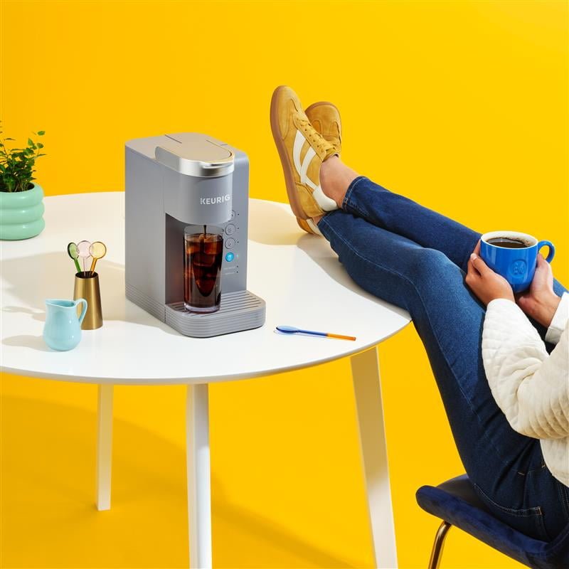 Introducing the Keurig K-Express Essentials Plus Single Serve Coffee Maker: Enjoy refreshingly delicious iced coffee and full-flavored hot coffee from one multitalented coffee maker. Brew the perfect coffee for any craving, mood, or mouthwatering moment. Always easy, always right. It’s all in the blue Brew Over Ice button. One push, and the Keurig K-Express Essentials Plus coffee maker automatically adjusts the brew temperature, starting hotter to extract full flavor, then cooling down to minimize ice melt. All for a vibrant, balanced iced coffee that never tastes watered down. Brew a 12oz cup for your favorite iced coffee or choose from 3 cup sizes for hot coffee — 6, 8, or 10oz. Whether brewing hot or iced, the 36oz removable reservoir lets you enjoy multiple deliciously refreshing cups between refills. Exclusively at Walmart.