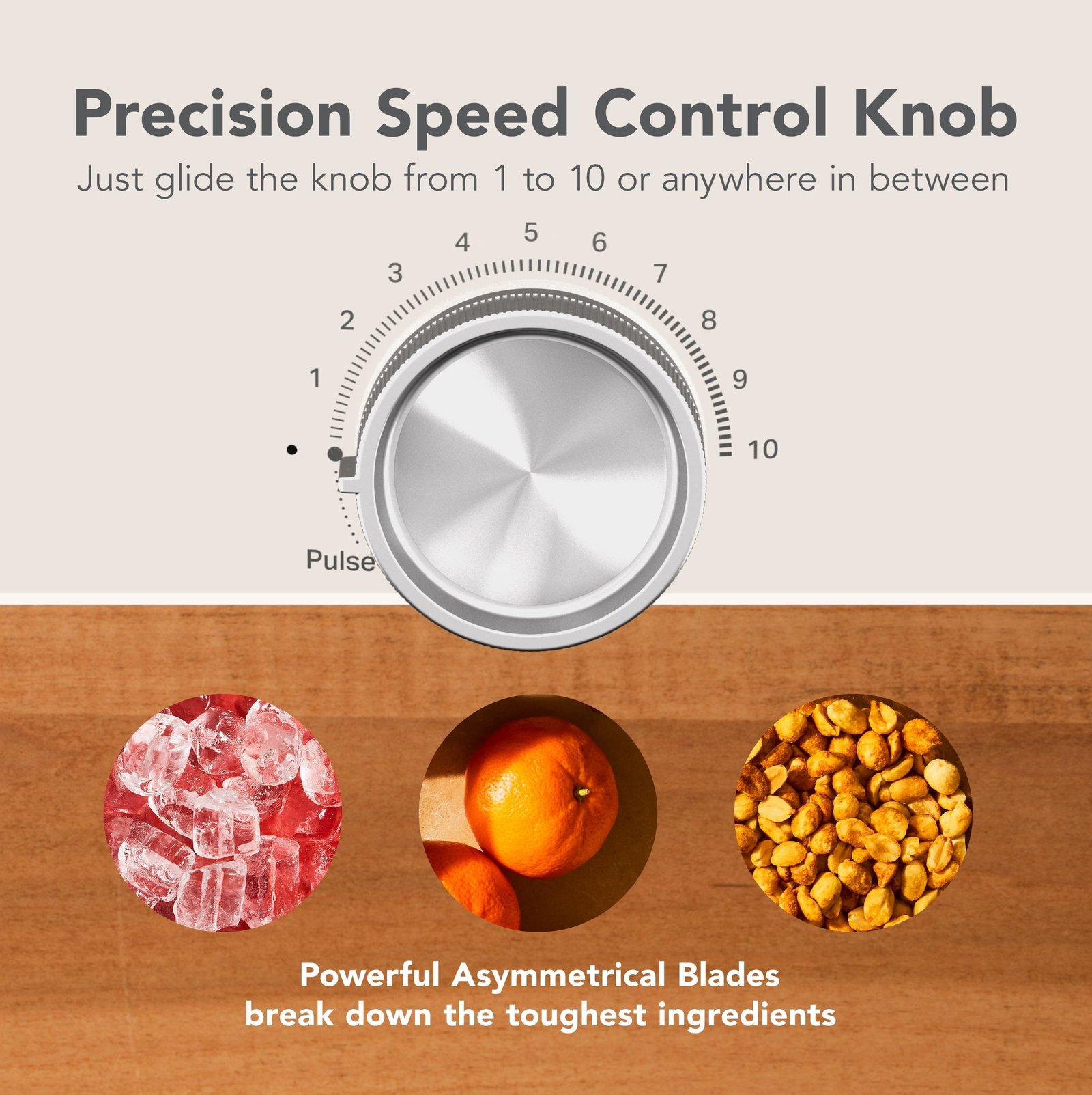 The KitchenAid Pure Power Blender helps craft the blends you want with a precision speed control knob. Use the 10 preset speeds, or simply twist the control knob to smoothly glide between speeds, finding the exact setting for your desired texture. Powerful 360 asymmetrical blades blend at different angles, pulling ice to the center and breaking down the toughest ingredients. 1700 Watts Peak Power* (*Laboratory measurement of peak input wattage, not the operational power at the blade; UL rated at 1200 watts)