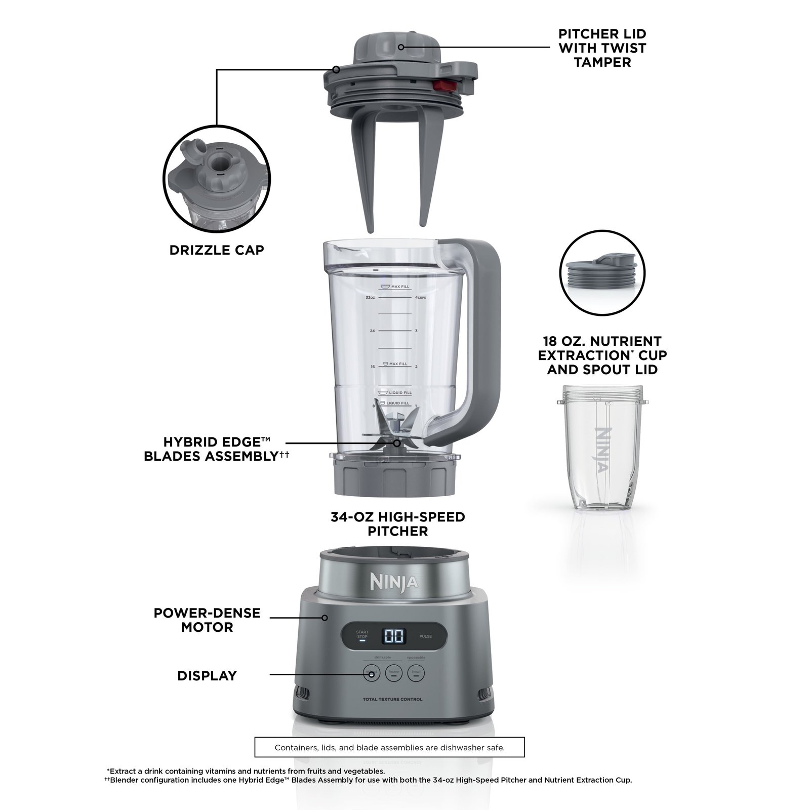 The Ninja Twisti, High-Speed Blender DUO blender delivers the smoothest purees and finest blends of any Ninja pitcher. The built-in Twist Tamper pushes down ingredients toward the high-speed blades to create perfectly thick outputs like smoothie bowls and nut butters. 5 Preset Auto-iQ programs help you create your favorite outputs with a touch of a button. Blend directly in your 18 oz. to-go cup for better ingredient breakdown. It comes with 10 delicious recipes for you to try. Clean up is easy with dishwasher-safe cups, blades, and lids. 1500 Watts.