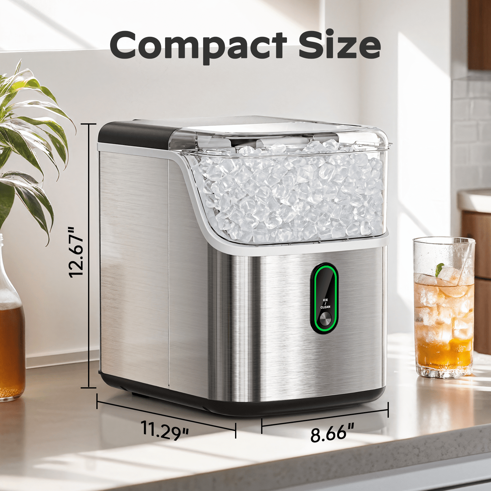 • Compact & Portable Design: Our pebble ice machine has compact dimensions of 12.67 x 8.66 x 11.29 inches. Fits on most countertops and ideal for home, kitchen, RV. Take it and enjoy the ice!