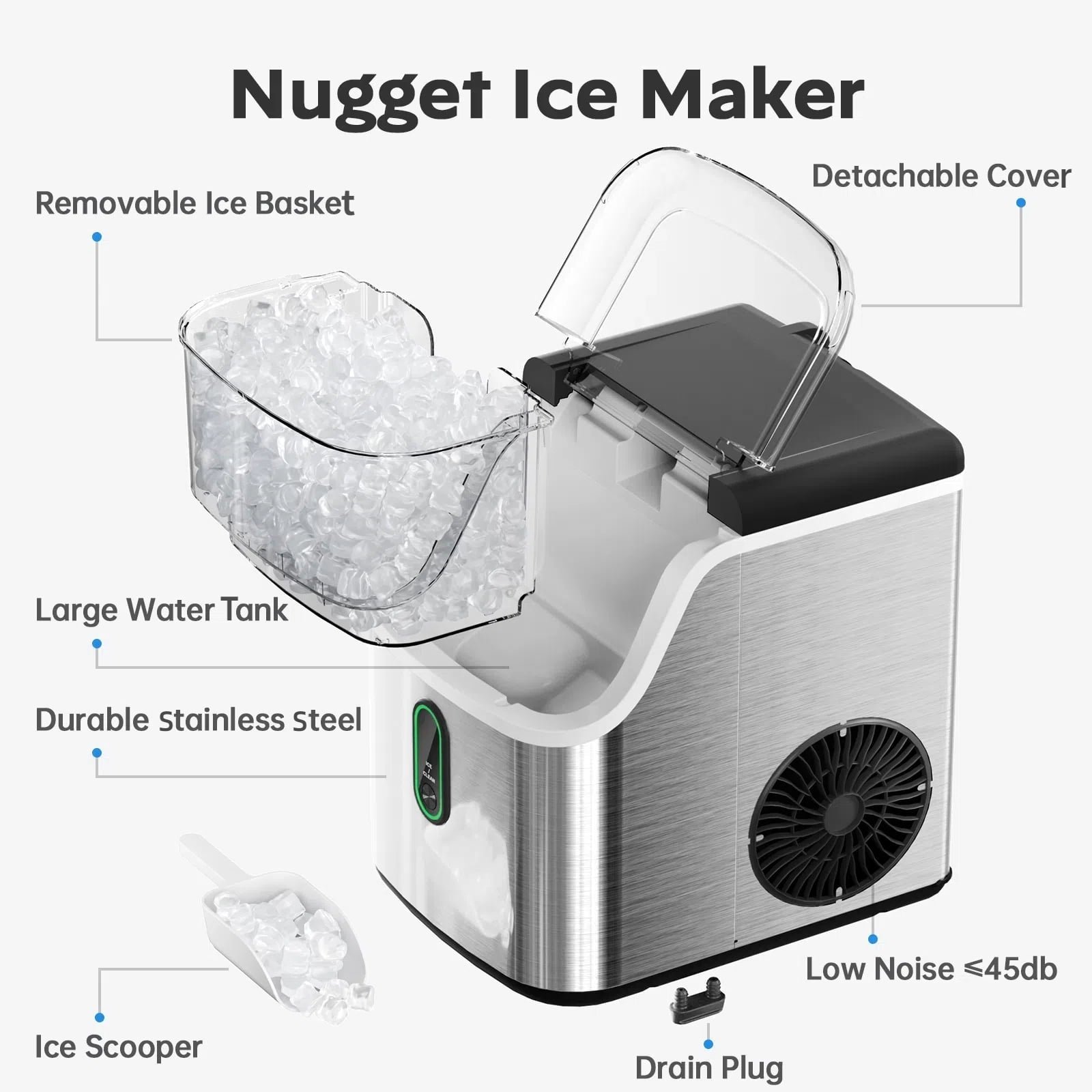 • Hassle-Free Cleaning: The built-in self-cleaning mode takes care of routine maintenance, while a detachable top allows easy access for deep cleaning when you needed. Spend less time cleaning and more time enjoying your ice!