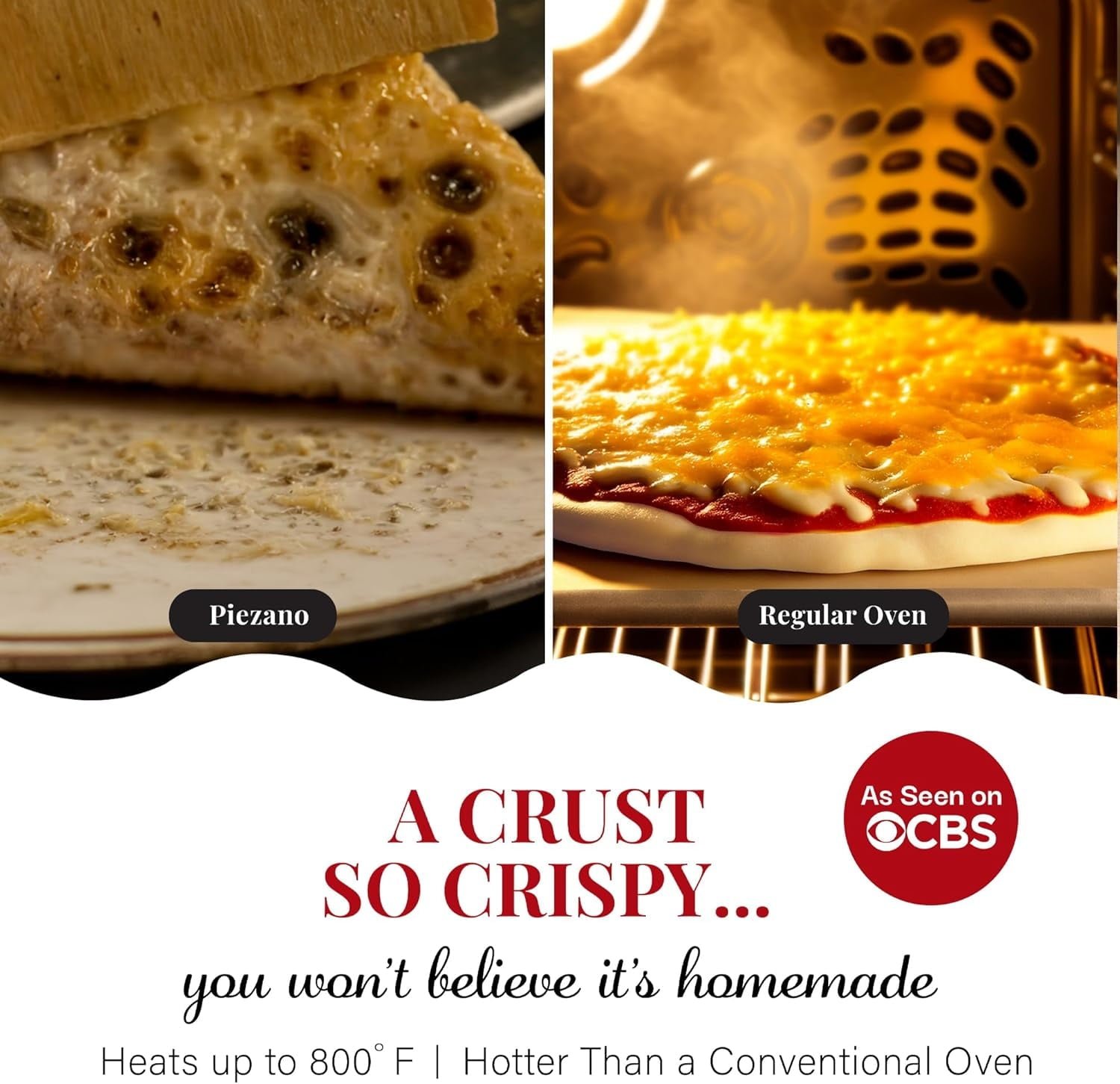DELICIOUS HOMEMADE PIZZA: Experience the taste of pizzeria-style pies right from home. Bake your personalized version on the stone surface and enjoy a cheesy, crispy crust pizza made in your kitchen, without turning on your oven. horno para pizza HEATS UP TO 800˚F: Get perfectly cooked pizza in under 6 minutes! Ovens typically only go up to 450-500˚F, preventing you from achieving the crispy crust that’s a pizzeria standard. The Piezano Electric Pizza Oven takes it all the way up to 800˚F so you get great crust results every time. horno de pizza STONE-BAKED PIES: A flat 12” pizza oven stone made of natural ceramic transfers heat while cooking so your pizza bakes evenly, resulting in a crispy crust. Once done, the stone is removable for easy cleaning. horno pizza ADJUSTABLE HEAT CONTROL: Top and bottom heat settings give you full control over the temperature for a more even bake. A built-in thermometer display lets you monitor the cooking process for ideal baking conditions. ELECTRIC POWERED: Plug your Piezano Indoor Pizza Oven into the nearest outlet. Place it on your countertop for everyday convenience. Base suction cups on the bottom prevent it from sliding all over the place. PLEASE NOTE: The Piezano Pizza Oven utilizes a 3 prong plug, NOT 2 prong. THE PERFECT GIFT: The Piezano Pizza Oven is the perfect fathers day or mothers day gift anybody can ask for! Build family endless family bonds over pizza and more. Gift Piezano for fathers day, mothers day, and more.