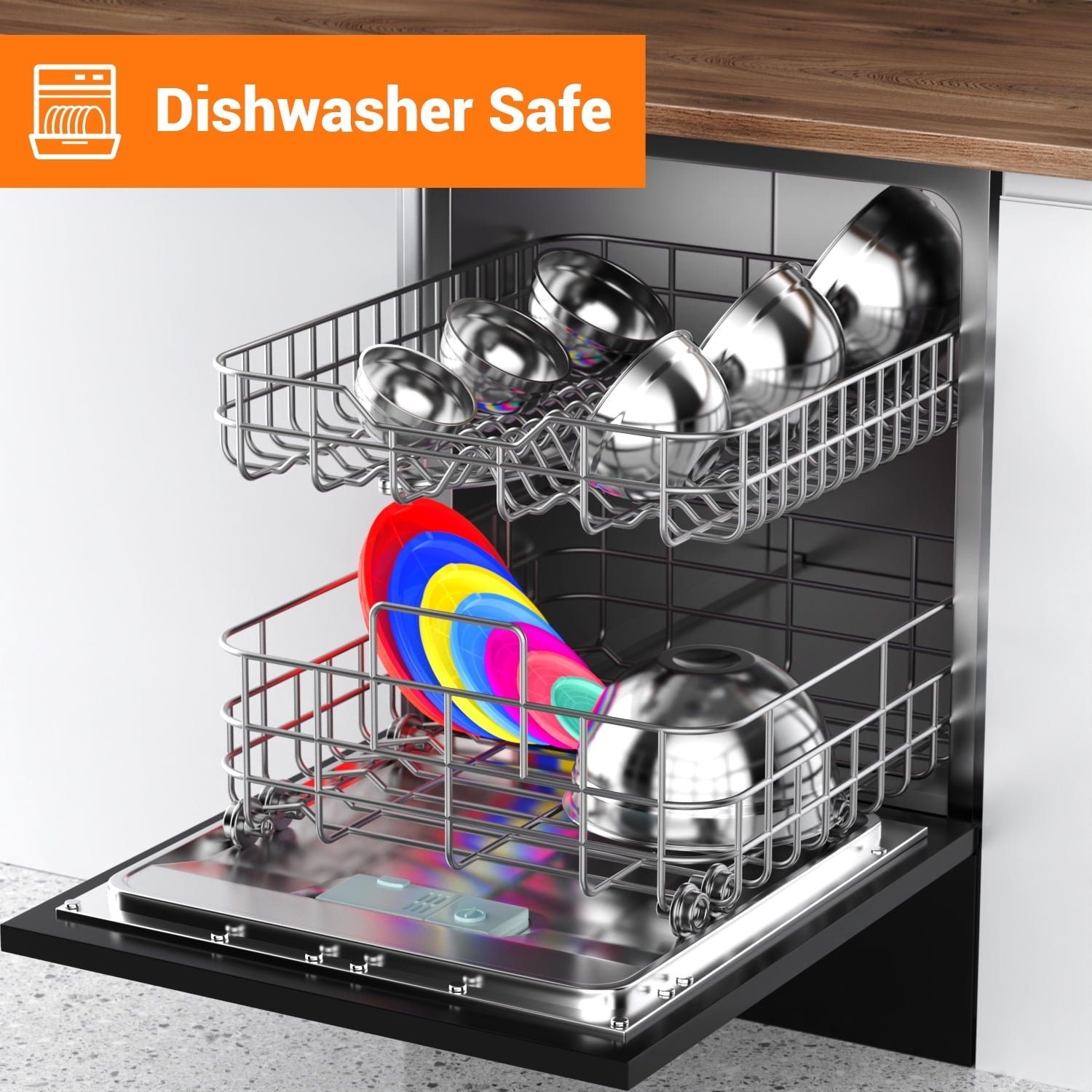 TINANA 7 pack stainless steel mixing bowls with lids are perfect for all your food prep needs. With sizes ranging from 0.7 to 7 quarts, you can mix, serve, marinate, and store food with ease and minimal mess. Plus, with tight-fitting lids, these stainless bowls for kitchen are great for storing food for longer periods. Save space in your kitchen with the space-saving nesting design of this stainless steel bowls set. These mixing bowls with lids set are dishwasher safe, making them easy to clean and maintain. Get your hands on this must-have set of mixing bowls for kitchen and take your cooking game to the next level!