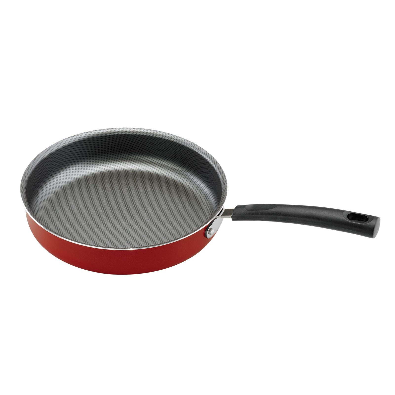 Tramontina’s prima ware 18-piece nonstick cookware set provides all the cookware essentials and is an excellent starter set. The patterned interior nonstick coating ensures easy cooking and simple cleanup. Available in two colors, the dishwasher safe cookware set makes prepping meals for one to many a breeze. Coordinating utensils and pots make this collection both practical and functional. This aluminum cookware set is lightweight and can be used by any level meal preparation person. Stay-cool handles decrease the chance of burning yourself when you are preparing and see-through lids lets you keep close watch on progress. The Tramontina’s prima ware 18-piece nonstick cookware set works well with most range types.