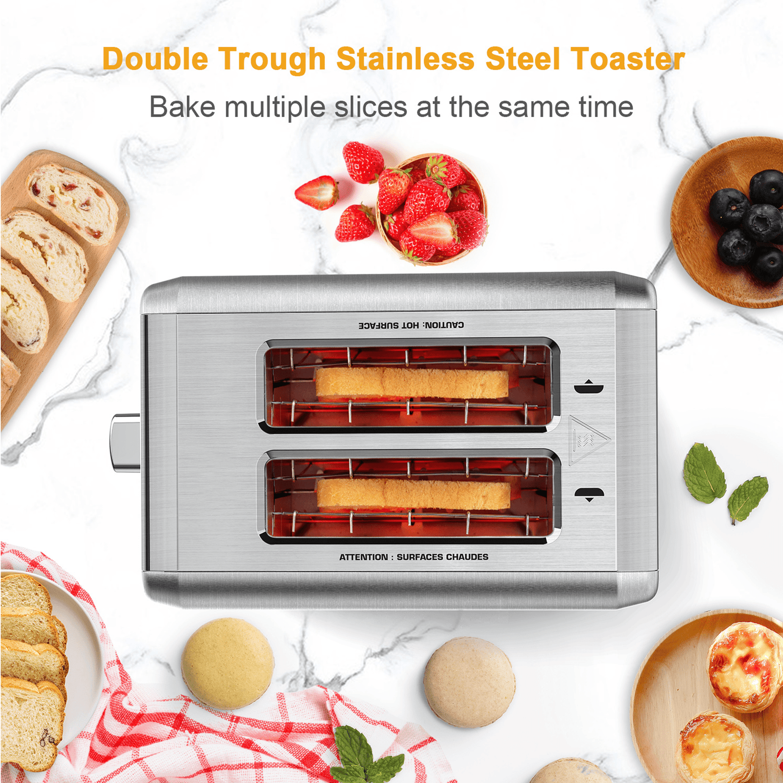 Stainless Steel Design: Enjoy perfectly toasted bread every time with this 2-slice stainless steel toaster from WHALL.